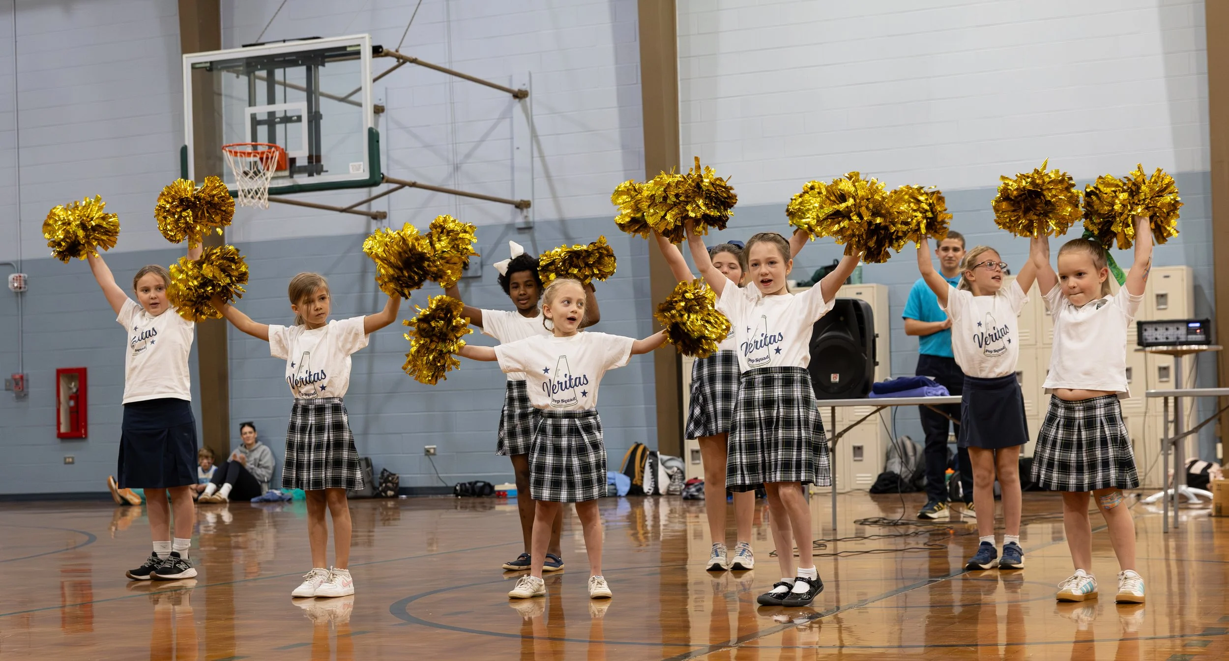 Character Formation: In accordance with the Veritas Telos, it is our desire that students participating in the pep squad will grow in the love of God as gracious servants. They will humble themselves before other students as they commit to support their endeavors, both athletic and otherwise. They will grow in hope and faith as they serve to lift up players, team members, and supporters regardless of performance or outcome. Students in the pep squad will be required to exercise courage by performing in front of a variety of audiences. They will also emerge as leaders in the community as they direct crowds in cheers and train up new members to the squad.